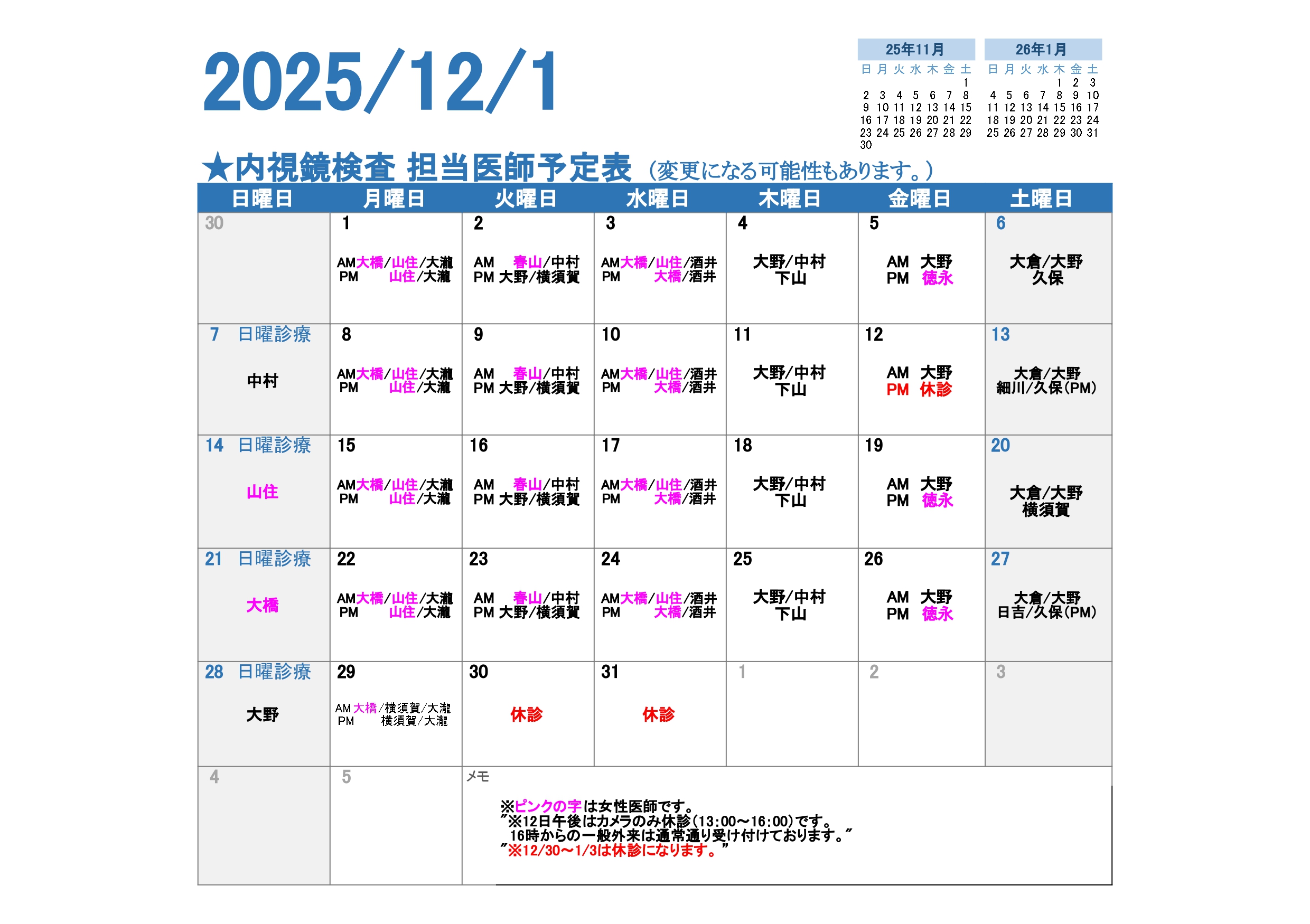 診療担当医師は変更となる場合がございます。予めご了承ください。