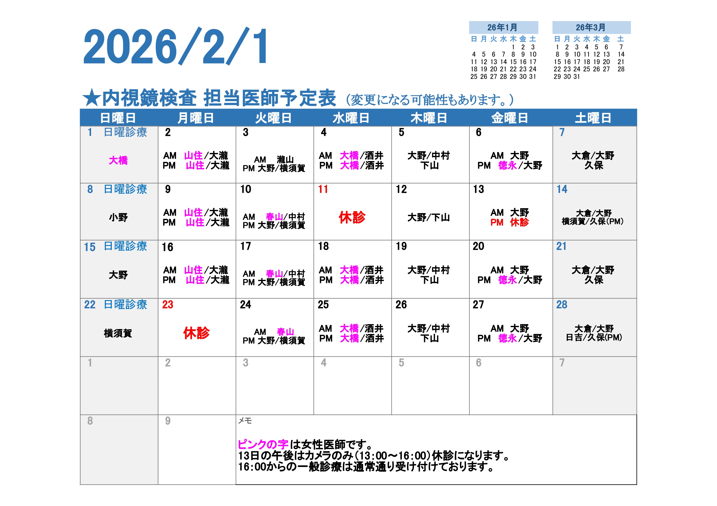 診療担当医師は変更となる場合がございます。予めご了承ください。